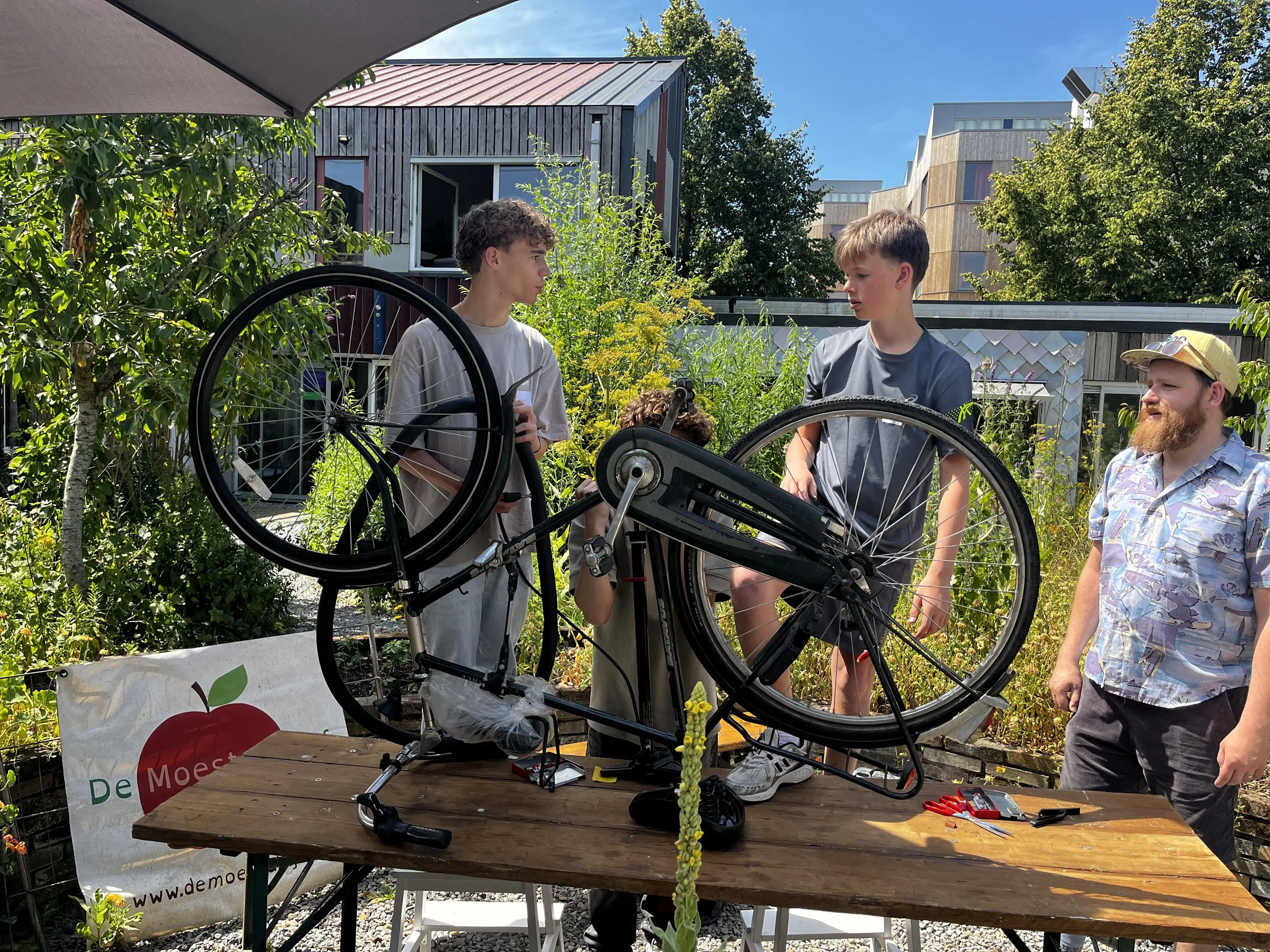We laten ons inspireren door de repaircafé’s en gaan in ons eigen R-Circuit aan de slag met reparaties & upcycling. Waarbij we verschillende basisvaardigheden en ambachtelijke technieken gaan oefenen in een circuitvorm. Denk aan reparatie van kleding en fietsen, upcycling van bestaande producten en recycling van materialen.